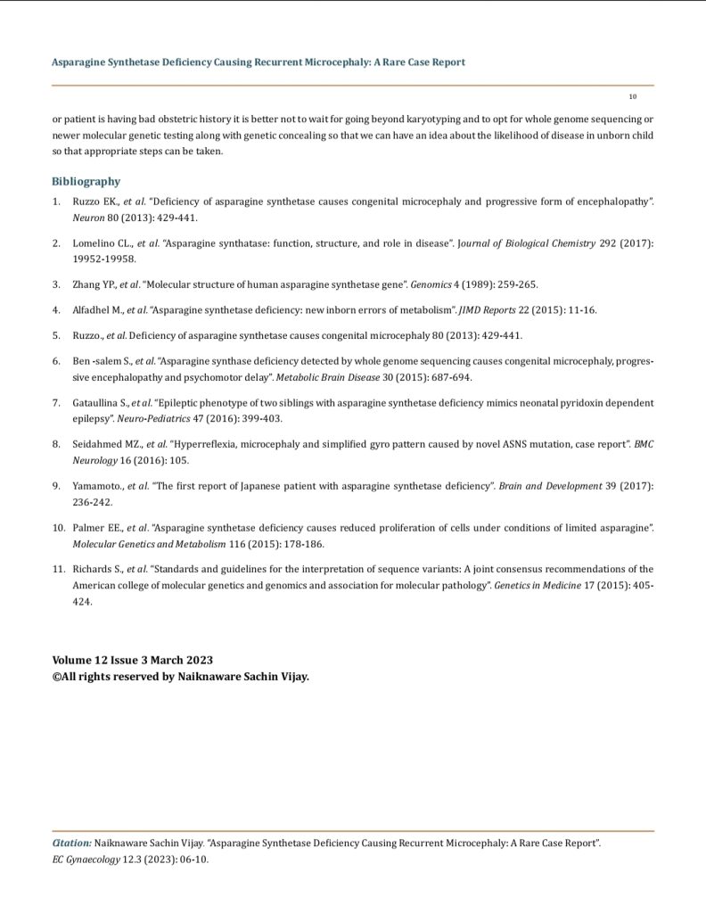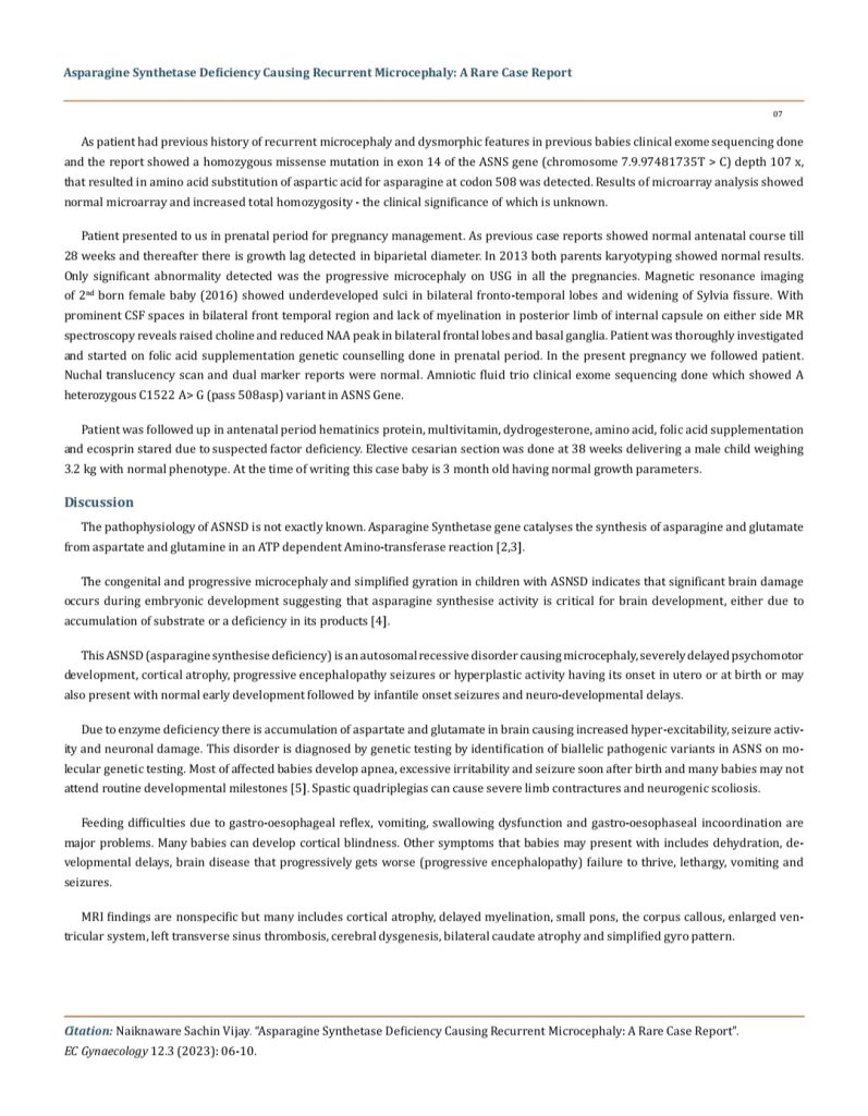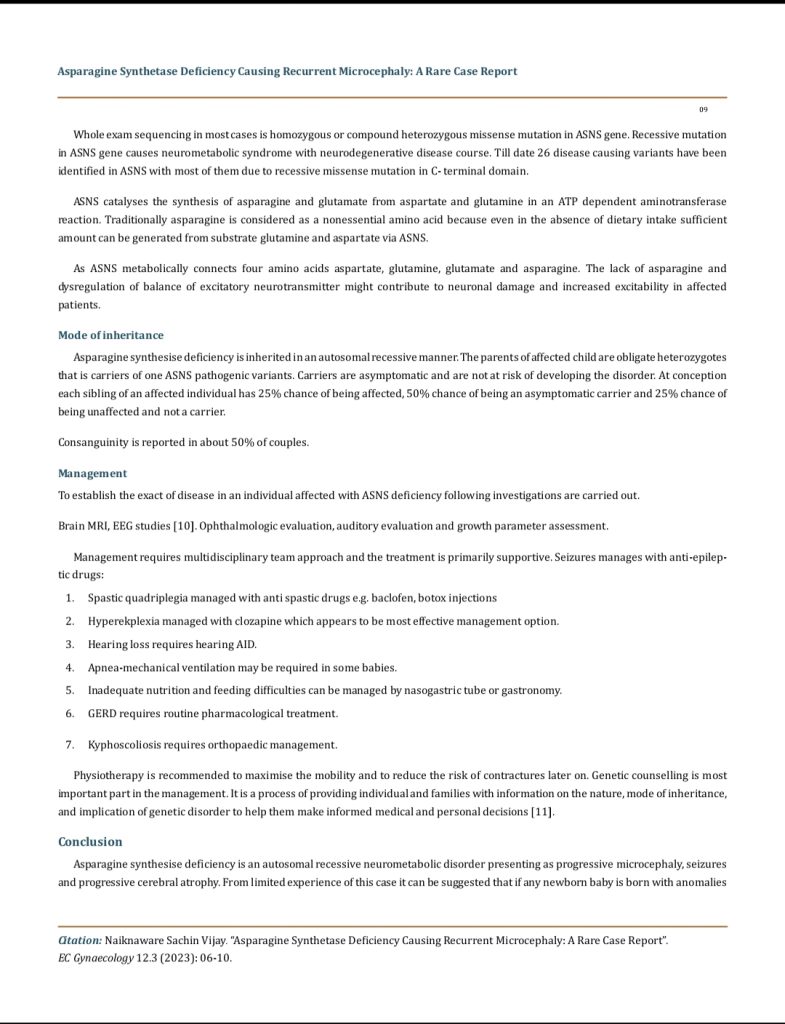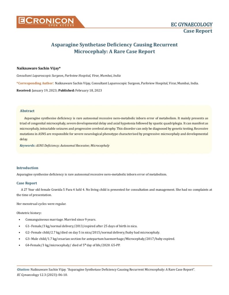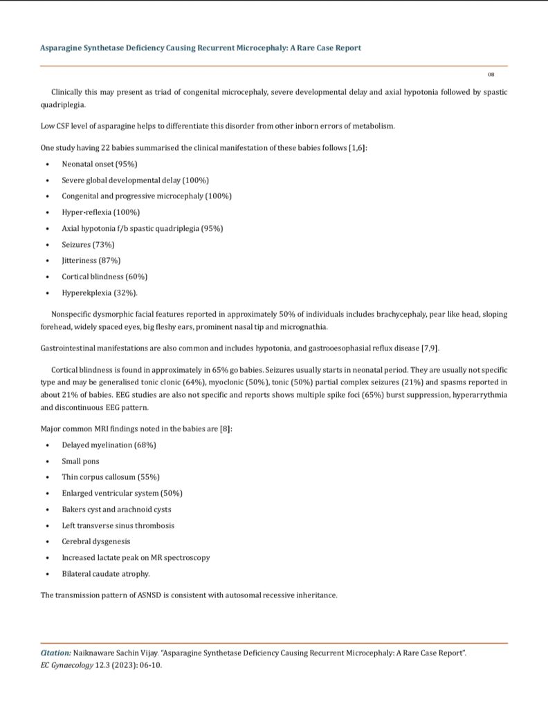 ASPARGINE SYNTHETASE DEFICIENCY CAUSING RECURRENT MICROCEPHALY: A CASE REPORT